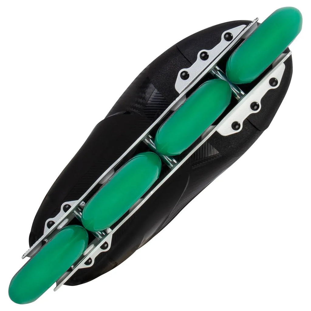 CCM Wheels: The staggered wheel configuration combines smaller wheels for quick maneuverability with larger wheels for increased speed. The 82A durometer wheels offer durability and balanced grip, making them ideal for playing on a variety of surfaces.