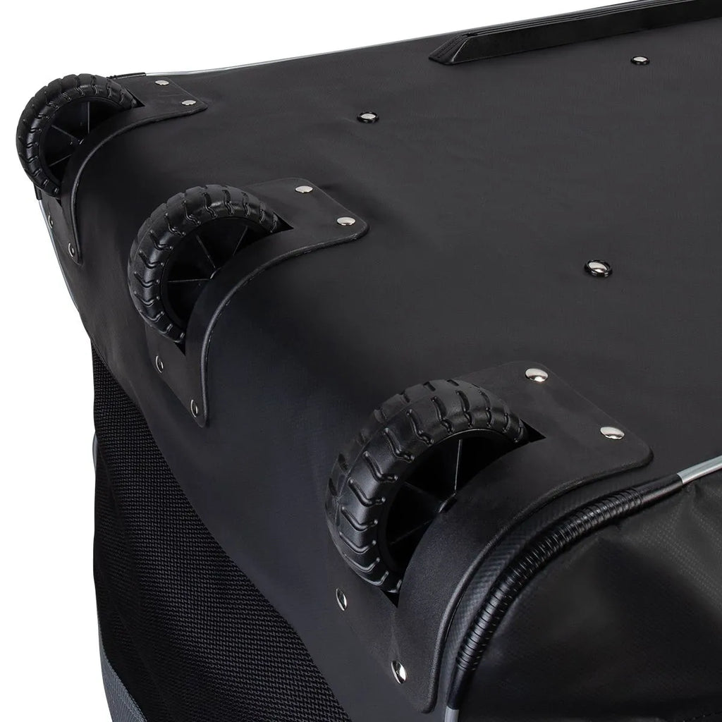 3 durable all-terrain wheels: The True Compartment Goalie bag is designed to move with ease, thanks to its 3 durable wheels with deep traction.